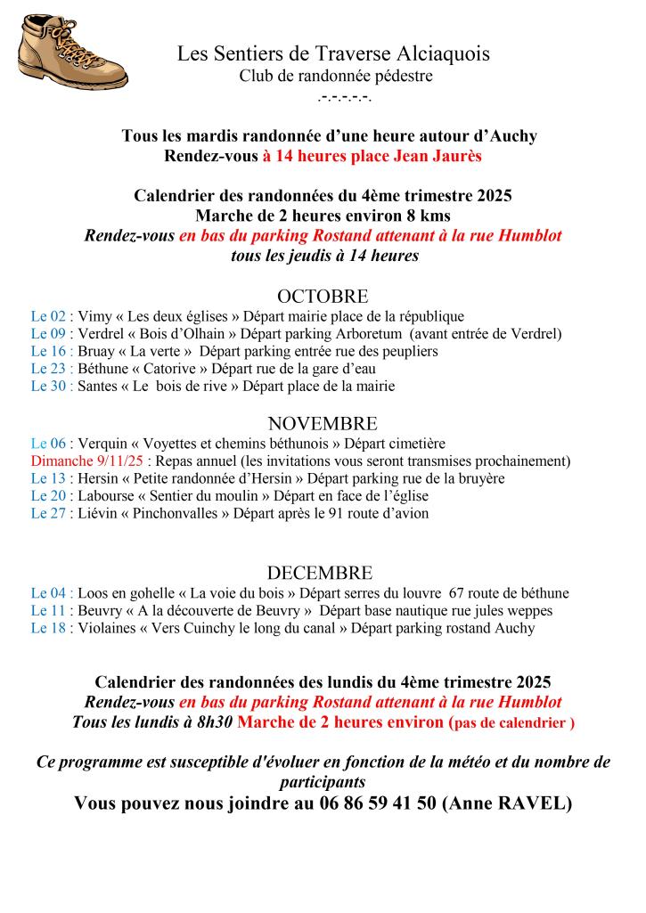 Planning 4ème trimestre 2025