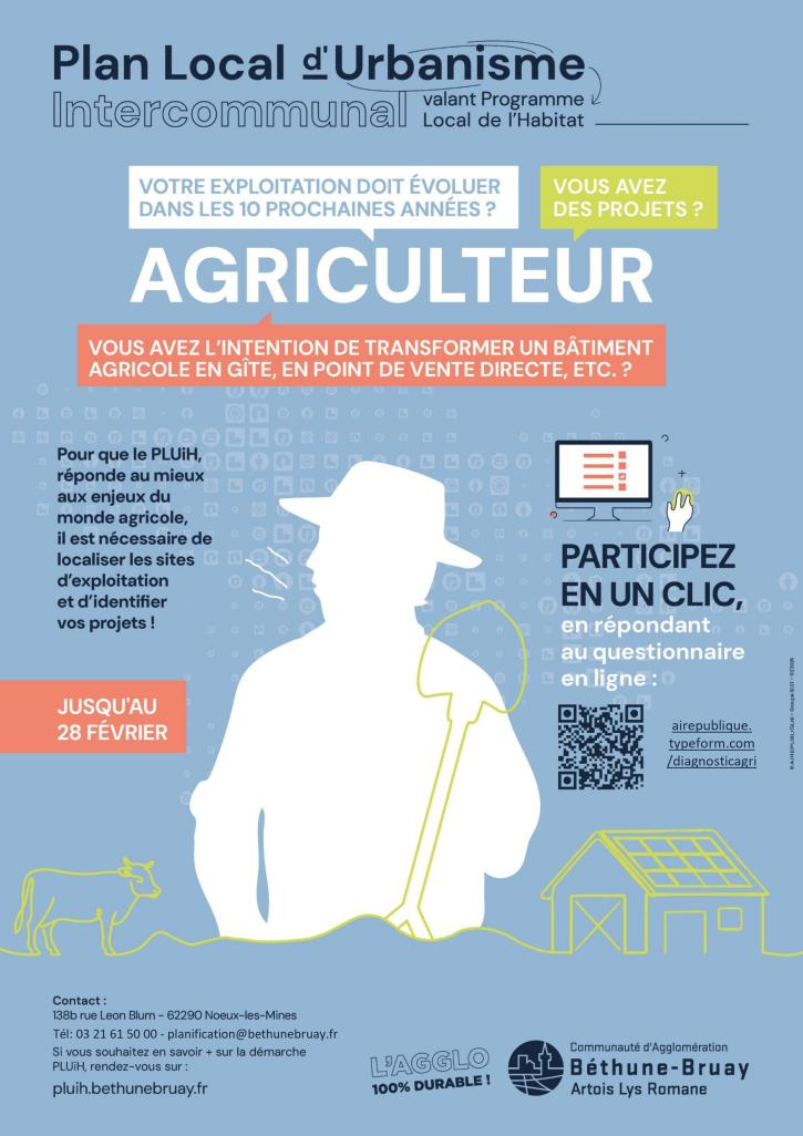 Dans le cadre de l’élaboration du PLUiH, un questionnaire et des permanences à destination des agriculteurs sont mis en place afin de recueillir leurs projets et discuter des éléments suivants :